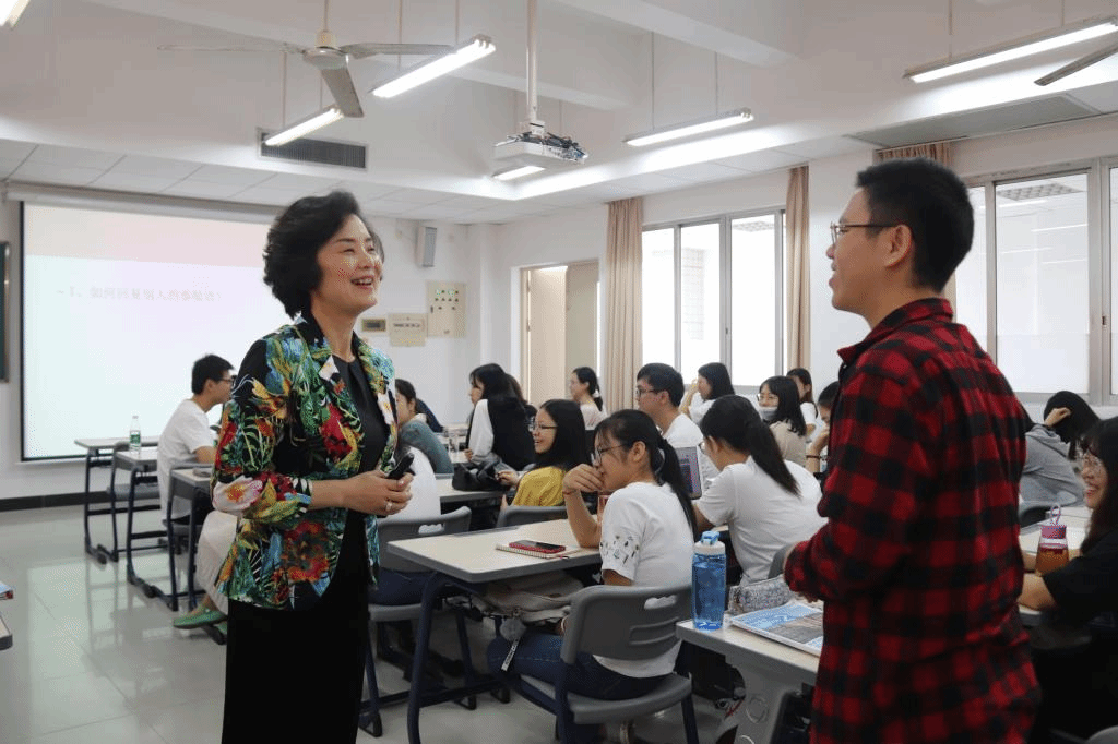 接下来,周教授就位次排序,迎送致意,如何向别人进行礼貌地介绍,握手及交谈时应注意什么,在不同场合如何得体着装等方面依次作了介绍。并通过几个有趣的互动游戏让同学们参与感受。