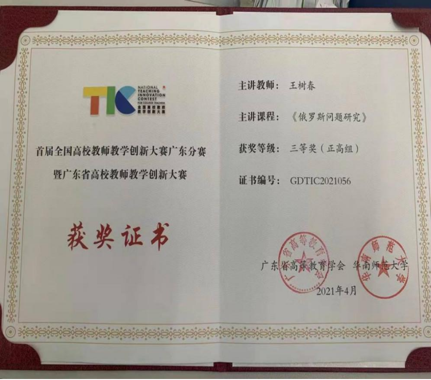 国际政治专业王树春教授获首届高校教师教学创新大赛广东分赛暨