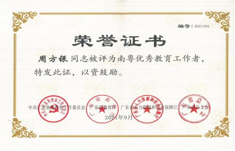 外交学系周方银教授获南粤优秀教育工作者荣誉称号