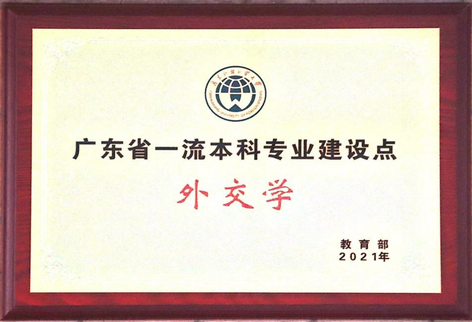 广东外语外贸大学外交学专业于1999年筹建,2000年正式招生,2004年外交学研究方向开始招收硕士研究生,现为广东省一流本科专业建设点和广东省特色专业。广东外语外贸大学是全国五个最早设立外交学专业的院校之一。外交学本科专业在国内相同专业中名列前茅。