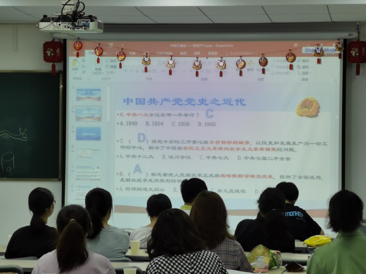 本网讯 为了深化对党的认识,不忘先辈的来时路,传承红色基因,坚定理想信念,十月一日晚,我院在“中秋灯谜会”上组织开展国际关系学院党政知识答题活动,同学们在轻松愉悦的氛围中以答题的形式回顾、学习了党的历史以及习近平总书记治国理政知识。