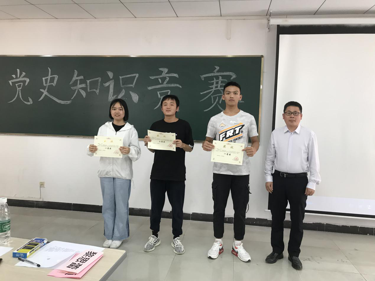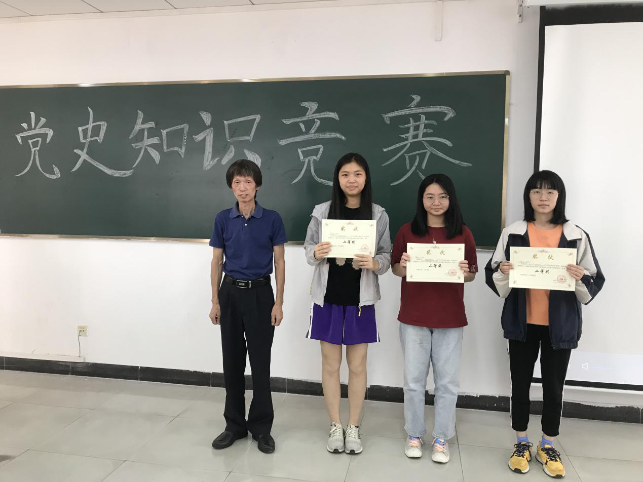 嘉宾们为选手们打分后进入比赛的最后一个环节——专业知识积分赛。选手们作答结束后,在工作人员统计、整理各组成绩的同时,钟志荣老师就比赛作总结发言。最终得出获得优秀奖的小组是美少女说啥都对小组和一切都队小组,获得三等奖的是沿海开放城市爱党小组,获得二等奖的是发际线总和我作队小组,获得一等奖的是党史研究办公室小组。嘉宾们为选手们颁奖并与选手们合影留念。颁奖结束后,主持人宣布我院第二届党史知识竞赛圆满落下帷幕。