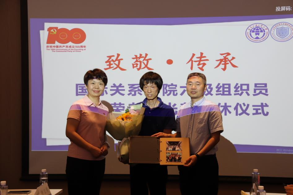 随后,钟志荣老师发表退休感言,总结了学院成立以来获得的各项成绩。他认为在国关学院工作的点滴都能感受到学院的小而精、小而特和强劲的发展势头,衷心祝愿学院的明天会更好。最后,周方银院长和袁薇佳书记为钟志荣老师献上花束和同事们留言的纪念相册并合影留念。