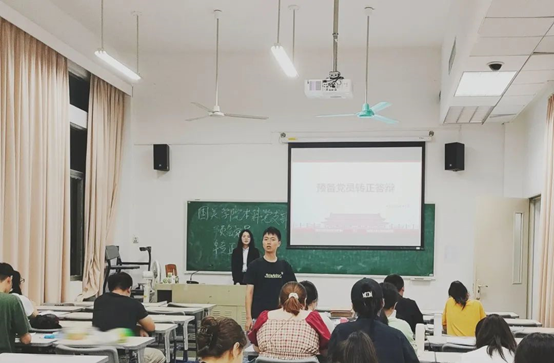 本网讯 2021年9月24日晚七点,国际关系学院本科学生党支部预备党员转正答辩大会在教学楼D栋104举行,10名预备党员及党员出席本次会议。