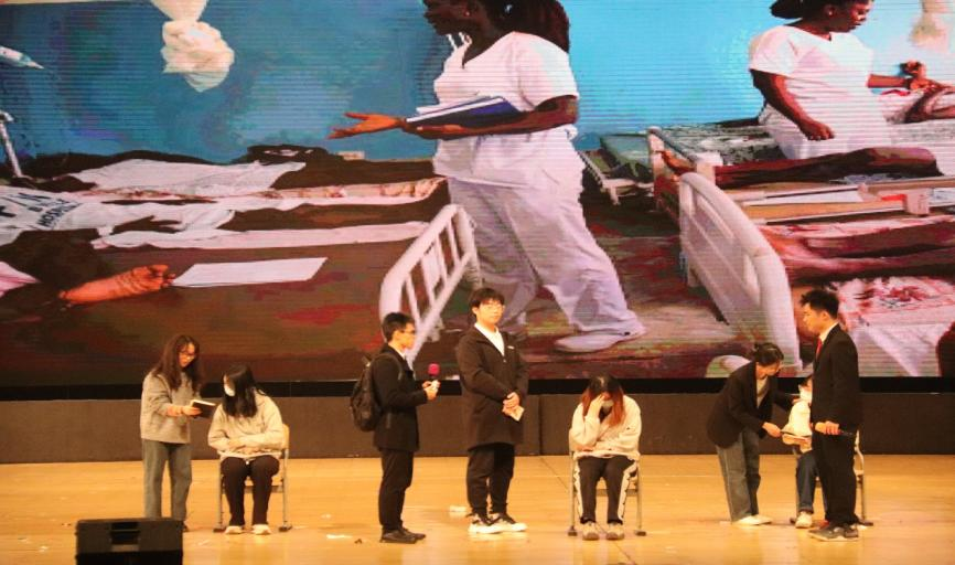 “青山一道同云雨,明月何曾是两乡”,全人类应当同心同向,如青山般共享发展恩泽,同明月般辉映未来通途。由国际组织与全球治理2201班带来的节目《命运与共 和谐共生》讲述了当血吸虫病肆虐于非洲坦桑尼亚时,中国医疗队火速前往义诊,授人以渔,为完善全球公共卫生治理、打造“健康丝绸之路”作出重要贡献。