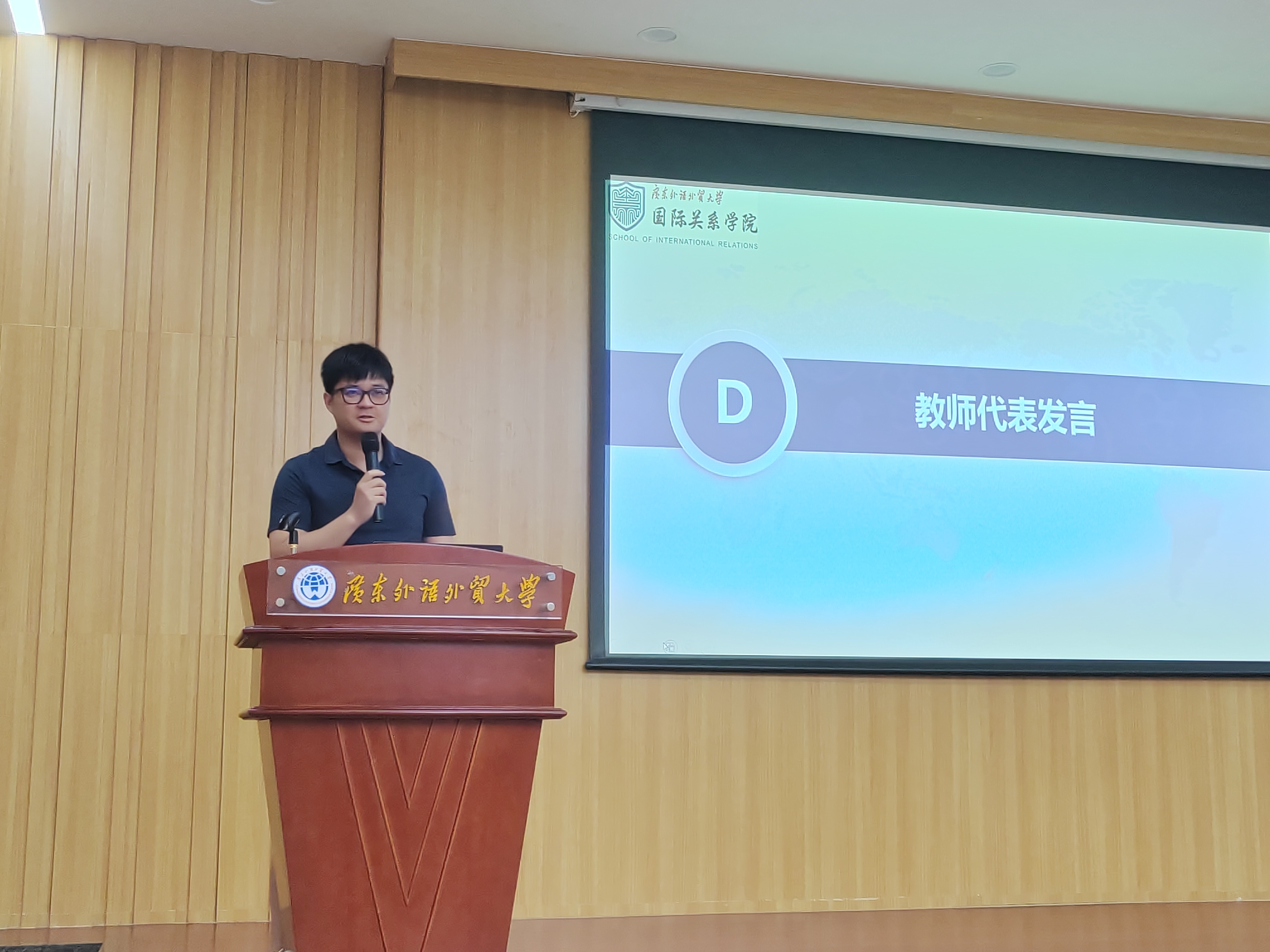 老生代表叶文珏认为广外无愧于“学贯中西,明德尚行”这八字校训,而国关更是未来可期,充满无限可能;她希望新生们能找准定位、树立目标,突破自己、勇于尝试,奋斗不止、自强不息,学到知识,交到朋友,玩得开心,成为更好的自己。