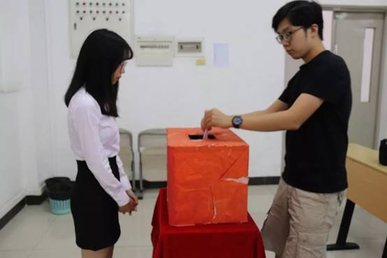 在接下来的选举环节中,秉持着公平公正的原则下,采用无记名投票方式进行差额选举。选出国际关系学院第一届团委、学生会委员,以及学生会主席。