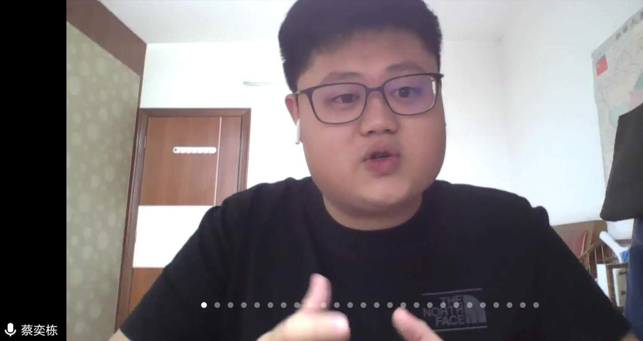 首先进行分享的是2016级的蔡奕栋同学。蔡奕栋同学是2019年国家奖学金的获得者,曾担任国关学院党建工作负责人。本次分享会,他就获得国家奖学金需要的条件以及如何参与学院工作进行分享。