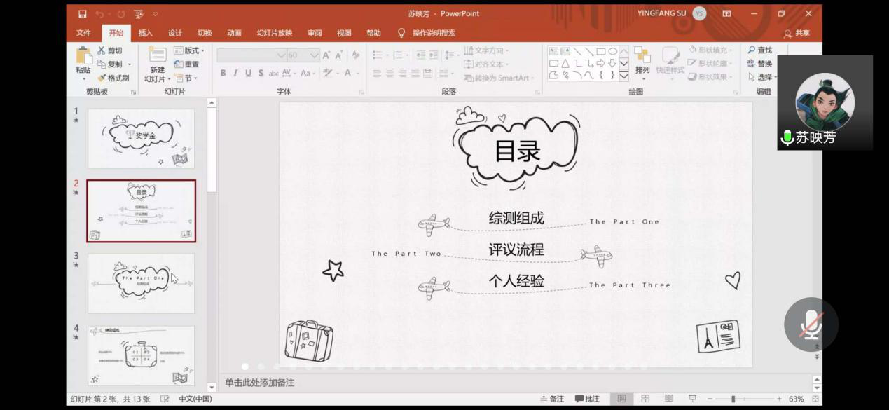紧接着,是2017级的苏映芳同学带来的分享。苏映芳同学曾获得学校奖学金,因此,她结合个人经验,就获得奖学金需要的条件进行了分享。