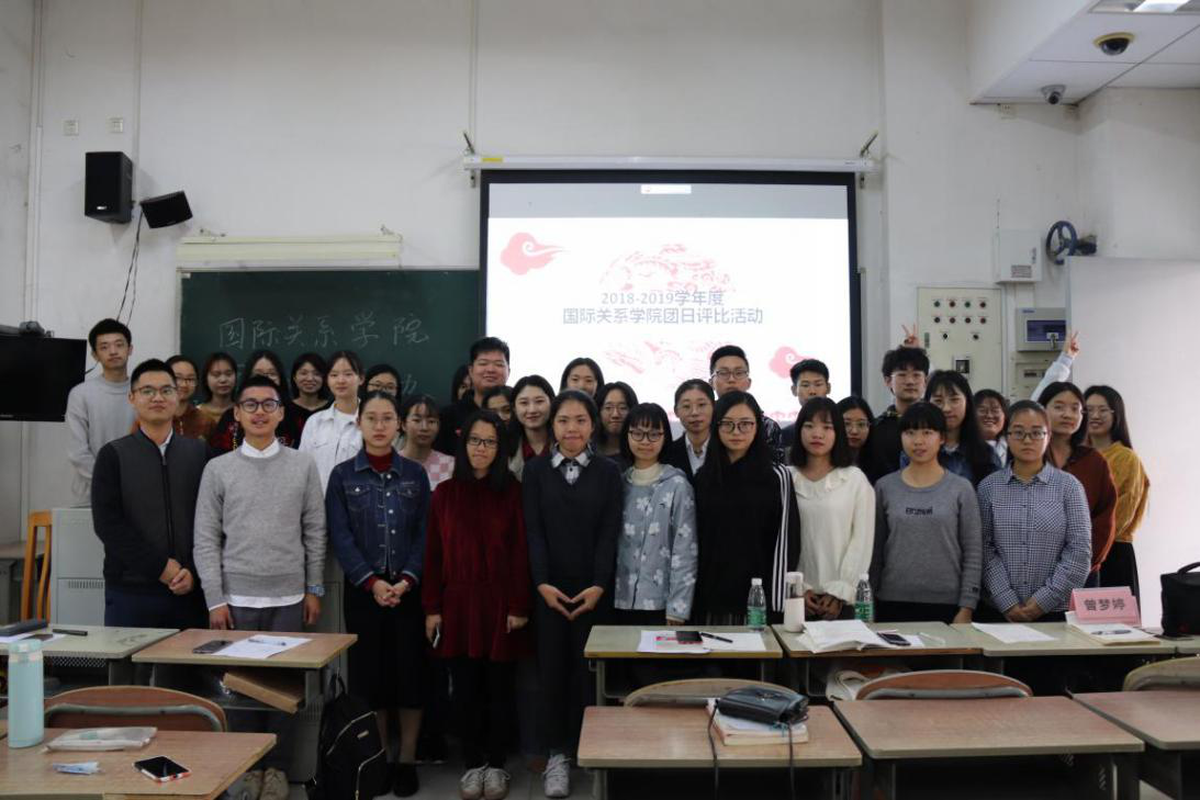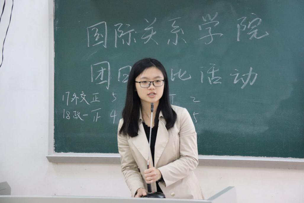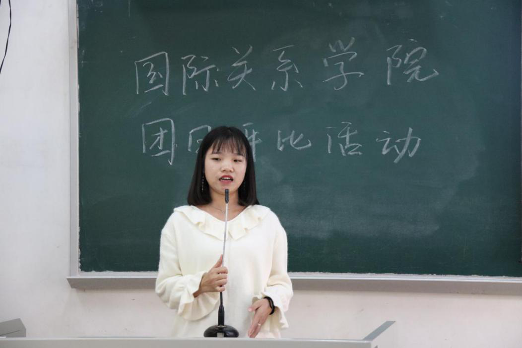 11月22日中午,国际关系学院17、18级团日评比活动在教学楼G110顺利举行。出席本次活动的嘉宾有兼职辅导员苏衔老师、团委学生会主席胡宇森、团委副书记吴君婷、组织部部长曾梦婷以及组织部副部长章诗怡。参加本次活动的有来自17、18级的四个团支部。