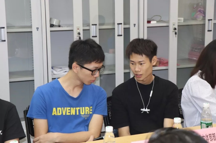 紧接着,我院学生会主席胡宇森介绍了隶属的文体部、学术部、生活部和外联部,另外附带有一个艺术团,并对之后两院加强交流与合作提出了希望。同时,数统学院学生会主席陈汶蓉介绍了文体部、学术部、秘书部、宣传部和外联部这一年来举办的活动,并提出了自己的一些疑惑与不足的方面,希望能够与我院相互借鉴。