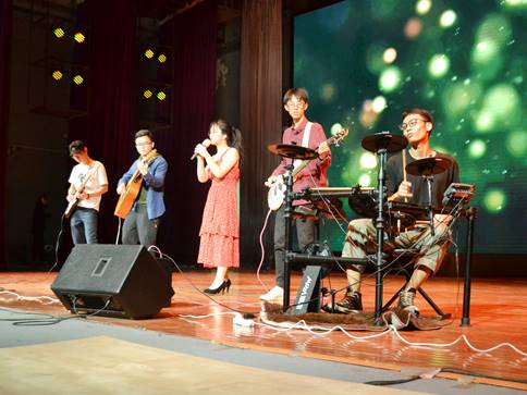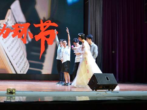 在等待比赛结果的中途,话剧队带来了一场笑中带泪的话剧演出——<<声外有声>>,主要讲述的正是一个女孩尽管唱歌唱得不好,但是仍然热爱音乐并且一路坚持的故事,话剧结尾演员站在舞台中央所说出的那句“灯光终会熄灭,但追求梦想的脚步不会停歇”不仅仅揭示了这个故事的意义,更触动了在场每一位观众的心弦。