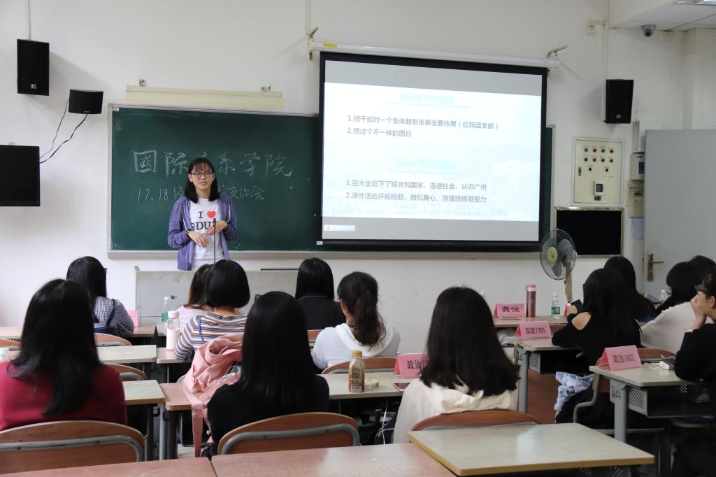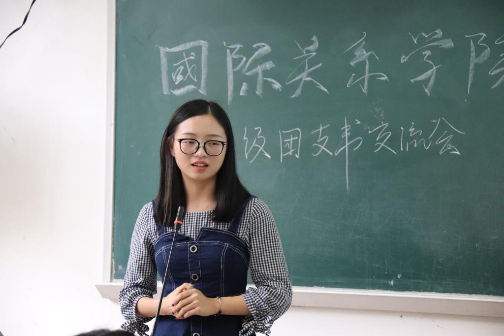 在今天这样一个秋高气爽的日子里,我们国关学院迎来了第一次的团支书交流会。兼职辅导员苏衔、学院团委副书记吴君婷、组织部部长曾梦婷以及两位优秀团支书黄悦、梁汶岚来到现场给17、18级的团支部委员们介绍工作经验。