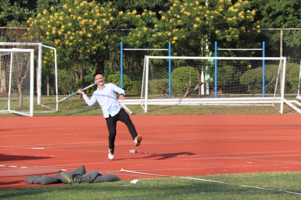 天空澄碧,男子标枪项目在绿茵场上悄然拉开帷幕。我院钟祥林同学以标枪为笔,将晴空作纸,划出一道道优美的弧线。汗水见证他的不懈努力,而钟同学勇于挑战自我的精神亦值得敬佩。