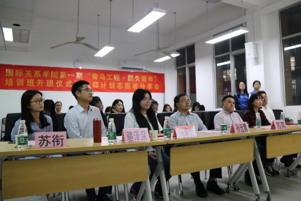12月5日,国际关系学院第一期“青马工程•国关青年”培训班开班仪式暨西部计划志愿者分享会在南校区D402会议室顺利举行。校团委书记苏奕、国际关系学院党总支书记孙远雷、周龙博士、院团委书记骆泽深、兼职辅导员苏衔出席本次开班仪式。更有幸邀请到了西部计划志愿者冯卓怡与刘何琳两位优秀校友。