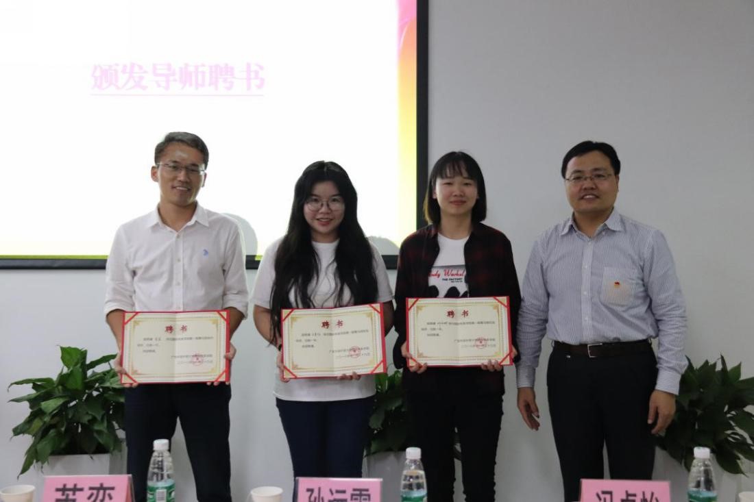 孙远雷书记向周龙老师、冯卓怡校友与刘何琳校友颁发导师聘书;最后,由汤颖怡同学带领青马班学员进行宣誓。至此,国际关系学院第一期“青马工程•国关青年”培训班开班仪式圆满结束。