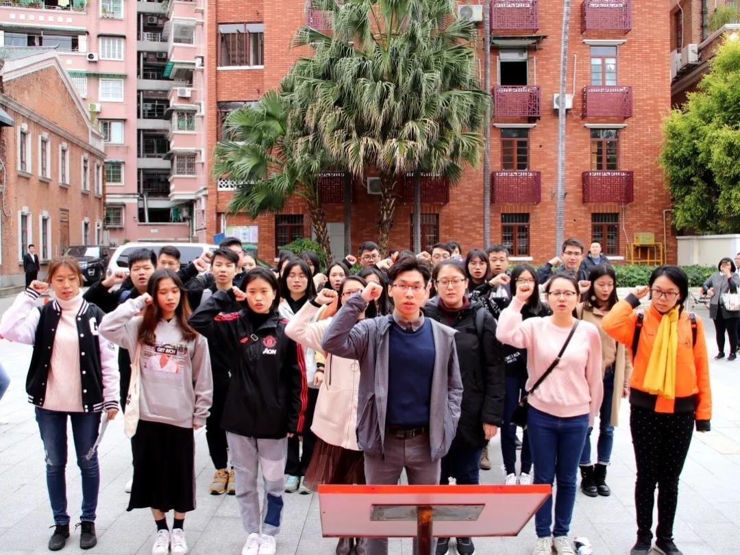 活动的最后一站是中共三大会址纪念馆。纪念馆主要分为“中共三大召开的历史背景”、“中共三大的召开”、“国共合作的实现”、“中共三大的历史作用和深远影响”四个部分作了全面展示。其中最为同学们津津乐道的是习近平总书记提出的“红船精神”。参观完毕后,同学们面对庄严的党旗宣读入党誓词,不忘初心,砥砺前行。