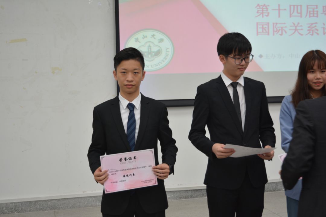 在黎家勇老师的悉心指导下,由张子轩、张立锟和黄一嘉三位同学组成的国家代表团力压一众优秀选手,斩获本次的最高奖项——最佳代表团金奖,由肖佳怡、袁浩延、何玉婷、陈诗慧等同学组成的记者团获得了“最佳记者团”。此外,张子轩同学被评为“最佳代表”,肖佳怡同学则被评为“最佳记者”。广外代表团包揽了本次论坛的四项奖项,一展国关学子的风采。