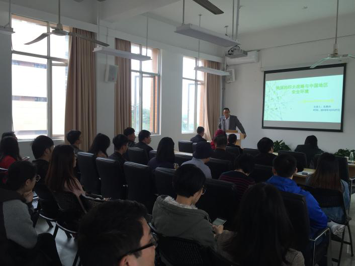 本网讯 12月27日上午9:00,中国社会科学院美国研究所副研究员仇朝兵在教学楼D座国关会议室为我院师生作了题为“美国的印太战略与中国的地区安全环境”的主题讲座,讲座由周方银院长主持。