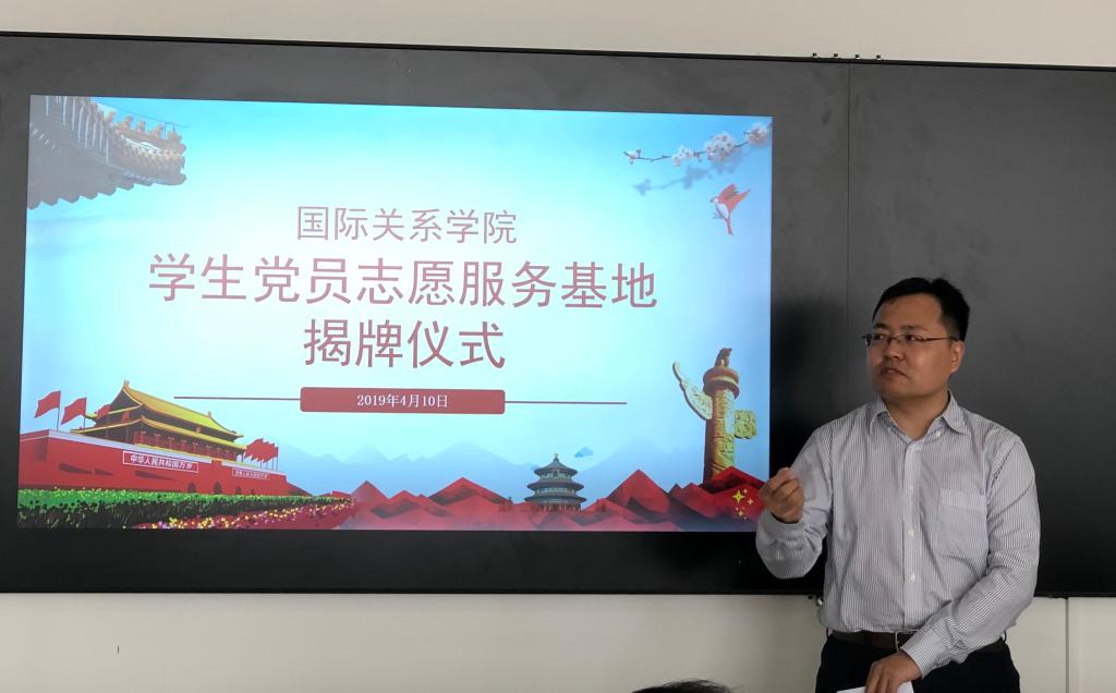 国际关系学院党总支书记孙远雷认为党员志愿者服务基地是青年党员成长的摇篮。而志愿服务活动是我们广大学子增强党性、提高素质的重要途径。他鼓励大家带头参与志愿服务,增强学生党员服务社会、服务他人的意识,更好地体现党员的先进性。借此机会他还对国际关系学院的学生党员们提出了以下要求:第一、思想认识要到位;第二、学习提升要到位;第三、组织管理要到位。