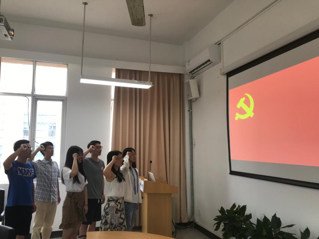 会议上还成立了成立临时党支部,各位队员在党旗下进行了宣誓。经投票选举,聘任周龙老师为临时党支部书记,苏艳萍为组织委员、郝洺为宣传委员。