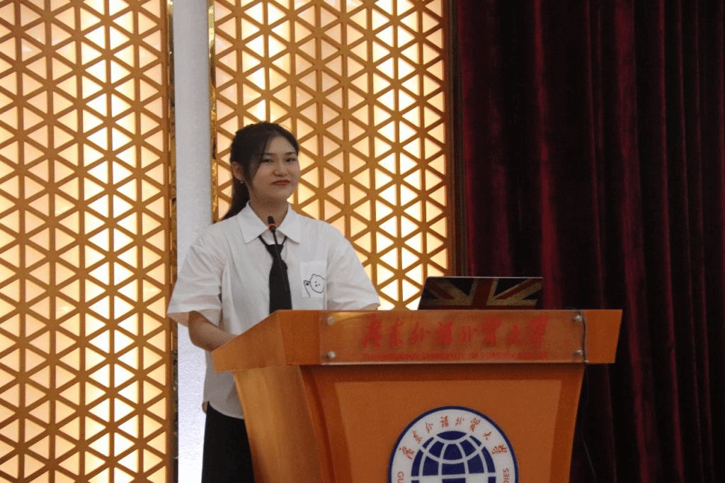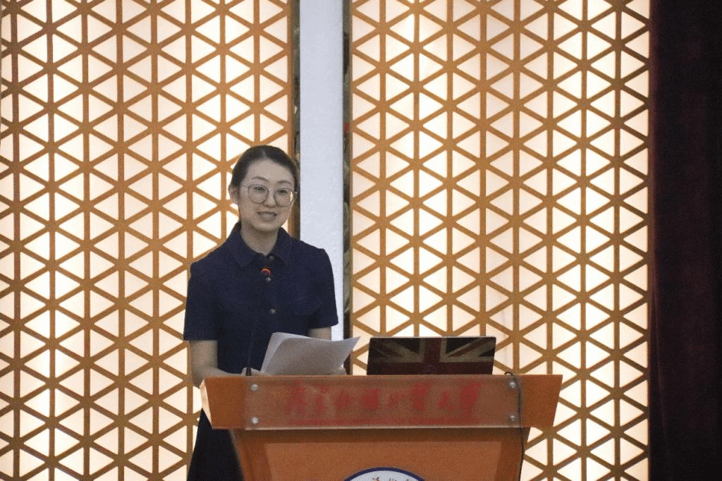 教师代表王璐瑶发言提到,要在大时代下抓住小确幸。她结合自身经历,鼓励新生突破自我,去享受校园生活、探索心之所向,并培育自律、自洽的价值观,做一个心怀寰宇的国关人。