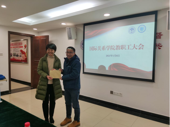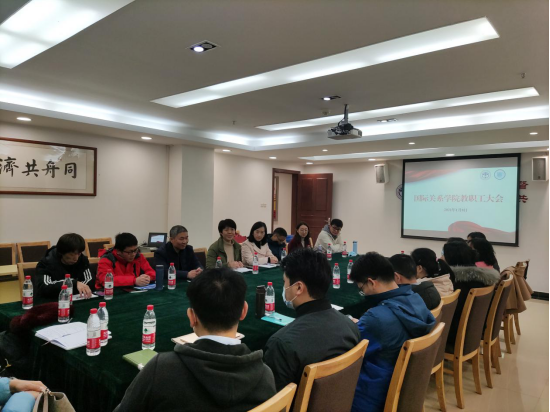 本网讯 1月8日下午,国际关系学院在北校区统战工作室104召开期末教职工大会,学院全体教职工参加了本次会议。会议由党总支书记袁薇佳主持。