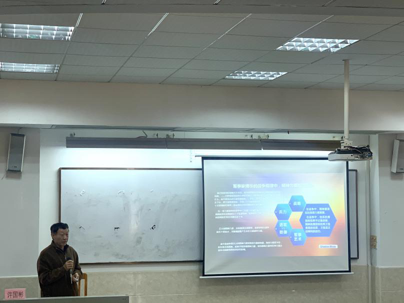 本次课程的主讲人为我校原副校长、我院关工委委员许国彬教授,主要内容为许教授从华为的几经磨难中汲取的经验与启示;教授以独到的见解给予了我们勇敢面对挫折、运用智慧解难的启发。