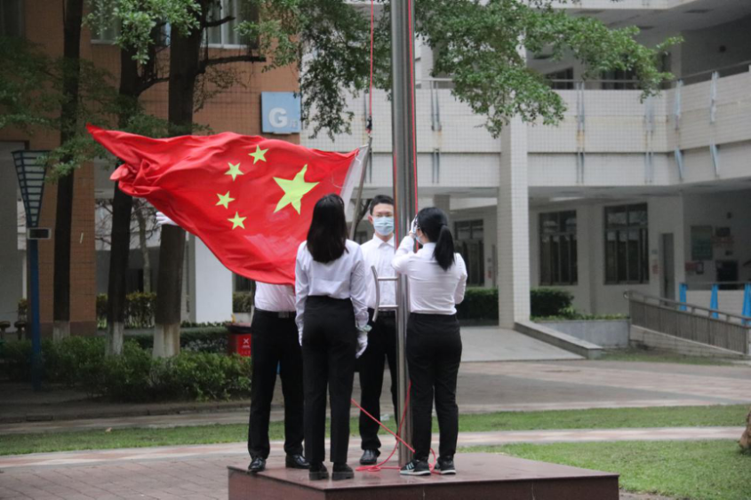 寒潮过境,清晨的广外略有凉意,但同学们怀揣着激动的心情,昂首挺胸地站立在升旗台前。随后,国旗在庄严的国歌声中缓缓升起,全体人员高唱国歌,向国旗行注目礼,向国旗致以最崇高的敬意!