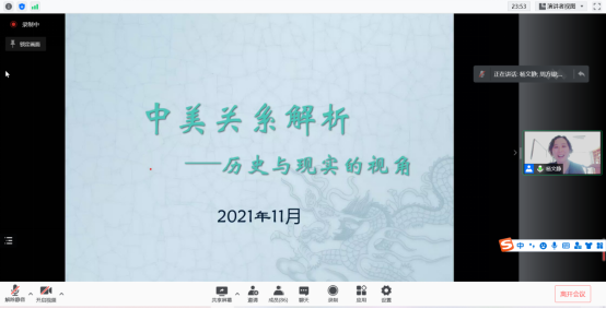 杨文静还分析了当下中美两国间的合作领域与对冲领域,通过奥巴马政府、特朗普政府和拜登政府的对华政策,对中美关系进行了解读,预测了中美关系的未来走向。