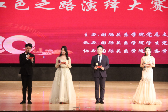 本网讯12月8日晚,国际关系学院2021年“溯百年建党征程,展今朝复兴宏图”红色之路演绎大赛在南校区大会堂举办。校党委常委、副校长王廷惠,学生处副处长国佳、校党委宣传部外宣科科长杨欣、校团委刘水秀老师,学院党总支书记袁薇佳、副书记陈健、副院长王志雄、关工委委员肖刚教授等出席此次活动。