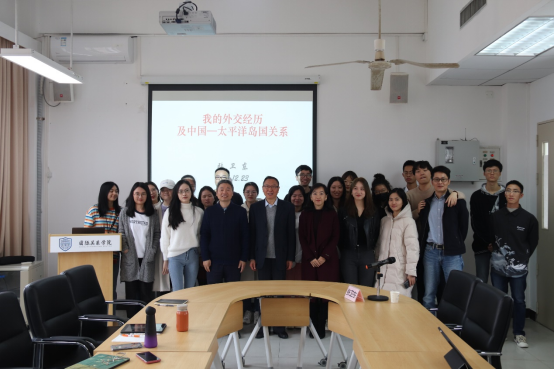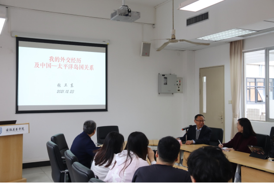 本网讯12月23日,国关大讲堂第34讲在南校区举行,前中华人民共和国驻加拿大大使馆公使衔参赞、驻密克罗尼西亚联邦、冰岛特命全权大使张卫东大使作题为《我的外交经历及中国——太平洋岛国关系》的讲座。讲座由国际关系学院院长周方银主持。