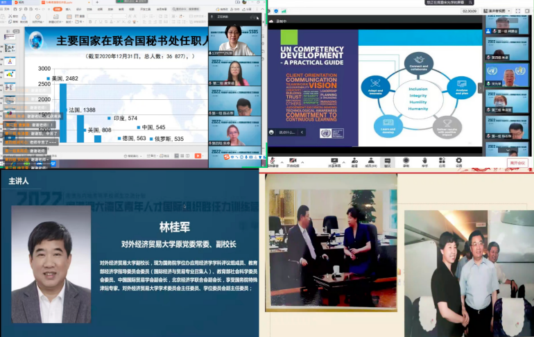 开营期间,中国联合国协会前副会长兼总干事张丹,世界卫生组织前外交官、原卫生部外事司长宋允孚,对外经济贸易大学原党委常委、副校长林桂军,中华人民共和国外交部中国一中东欧国家合作事务特别代表霍玉珍,上海交通大学国际与公共事务学院教授刘宏松,北京大学国际关系学博士孟文婷,原联合国秘书处政治部资深研究员张力文,世界动物保护协会北京代表处首席代表赵中华,绿色和平东亚分部中国原首席代表李雁等专家学者分别就“联合国与中国的贡献”、“从全球抗击新冠探讨国际组织”、“WTO的改革与中国的作用”、“外交生涯与外交官的故事”、“中国参与国际组织与全球治理”、“青年人的联合国职业发展攻略”、““一带一路”倡议与联合国可持续发展(英文讲座)”、“生物多样性保护需要全球治理”、“全球气候治理的多层参与”等议题为学员们带来了9场学术盛宴,并采取了专题培训、实践模拟、分组讨论等方式使同学们得以进行更加深刻的交流与学习。