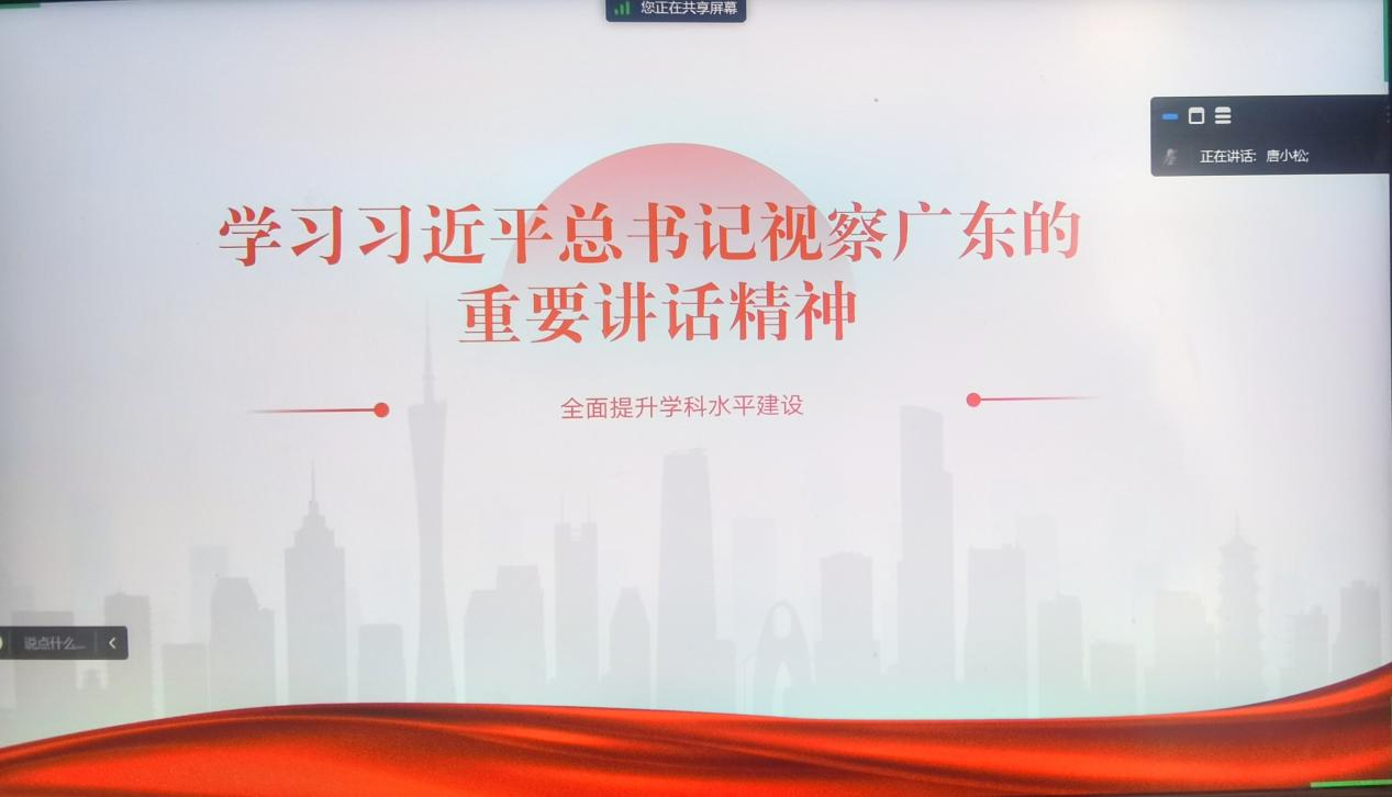 本网讯 为推动学习贯彻习近平新时代中国特色社会主义思想主题教育扎实有效开展,5月5日上午,我院主题教育读书班暨党委理论学习中心组召开专题学习会,深入学习习近平总书记视察广东重要讲话精神。会议由我院党委书记袁薇佳主持,院长唐小松领学并上党课,我院党委委员、党政班子成员、党政办主任、组织员及区域国别研究院党支部党员参加学习。