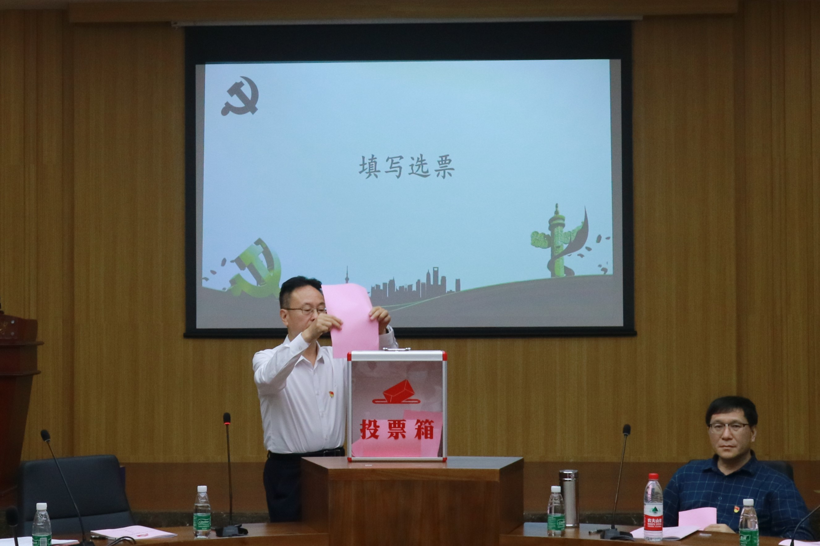 陈健同志宣读《国际关系学院党委换届选举办法(草案)》,并组织与会党员表决通过了选举办法(草案)、总监票人、监票人和计票人名单。大会按照通过的选举办法相关程序,通过无记名投票、差额选举的方式,选举产生了新一届党委委员。