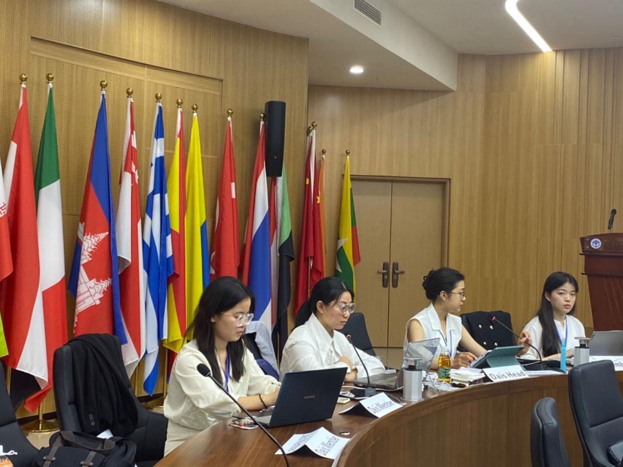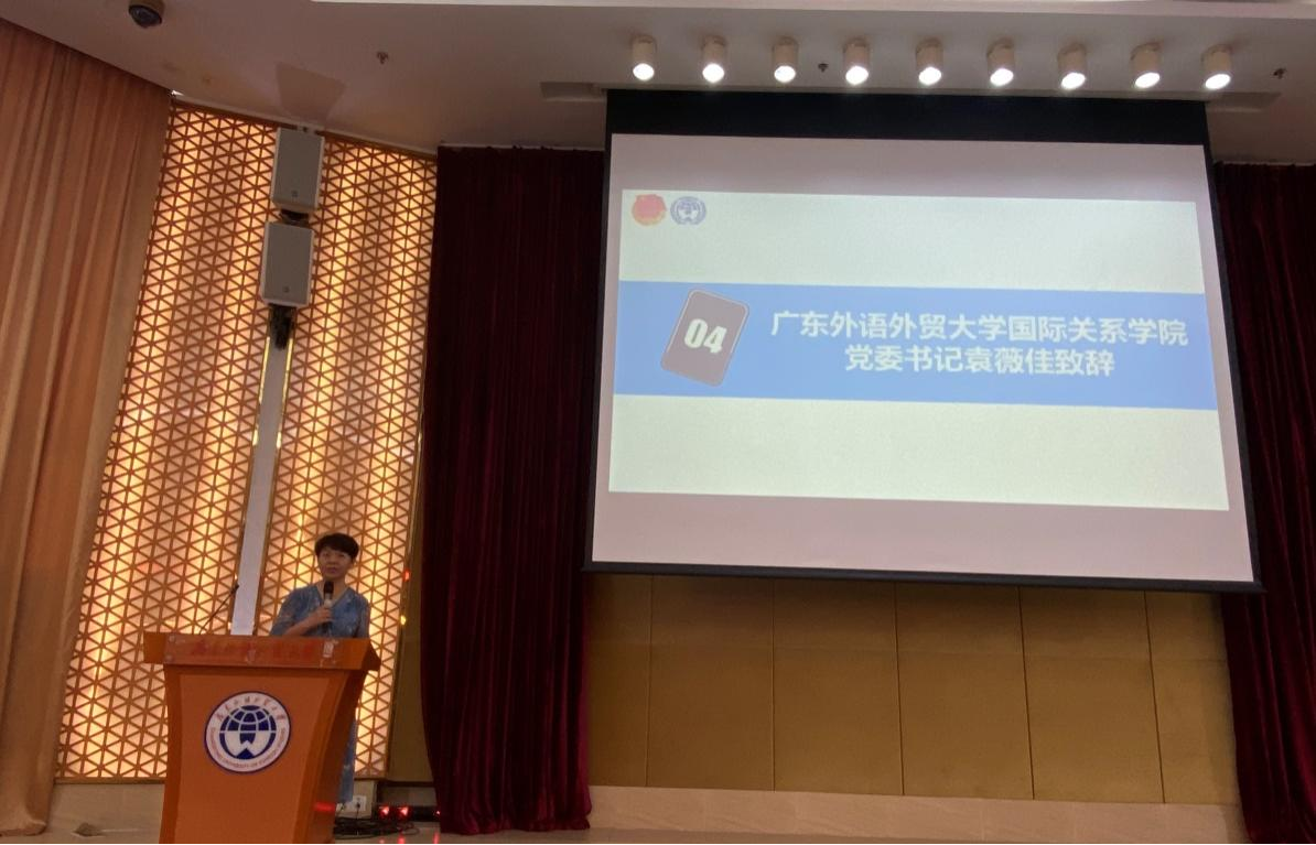 本网讯 2023年7月7-9日,由广东外语外贸大学国际关系学院主办、广东外语外贸大学模拟联合国协会承办的第十四届广东外语外贸大学模拟联合国大会在大学城举行。校党委常委、副校长刘海春,国际关系学院党委书记袁薇佳、副书记陈健,广外模联协会指导老师孙章季、党政办主任谭珺如和辅导员等出席了开幕式。