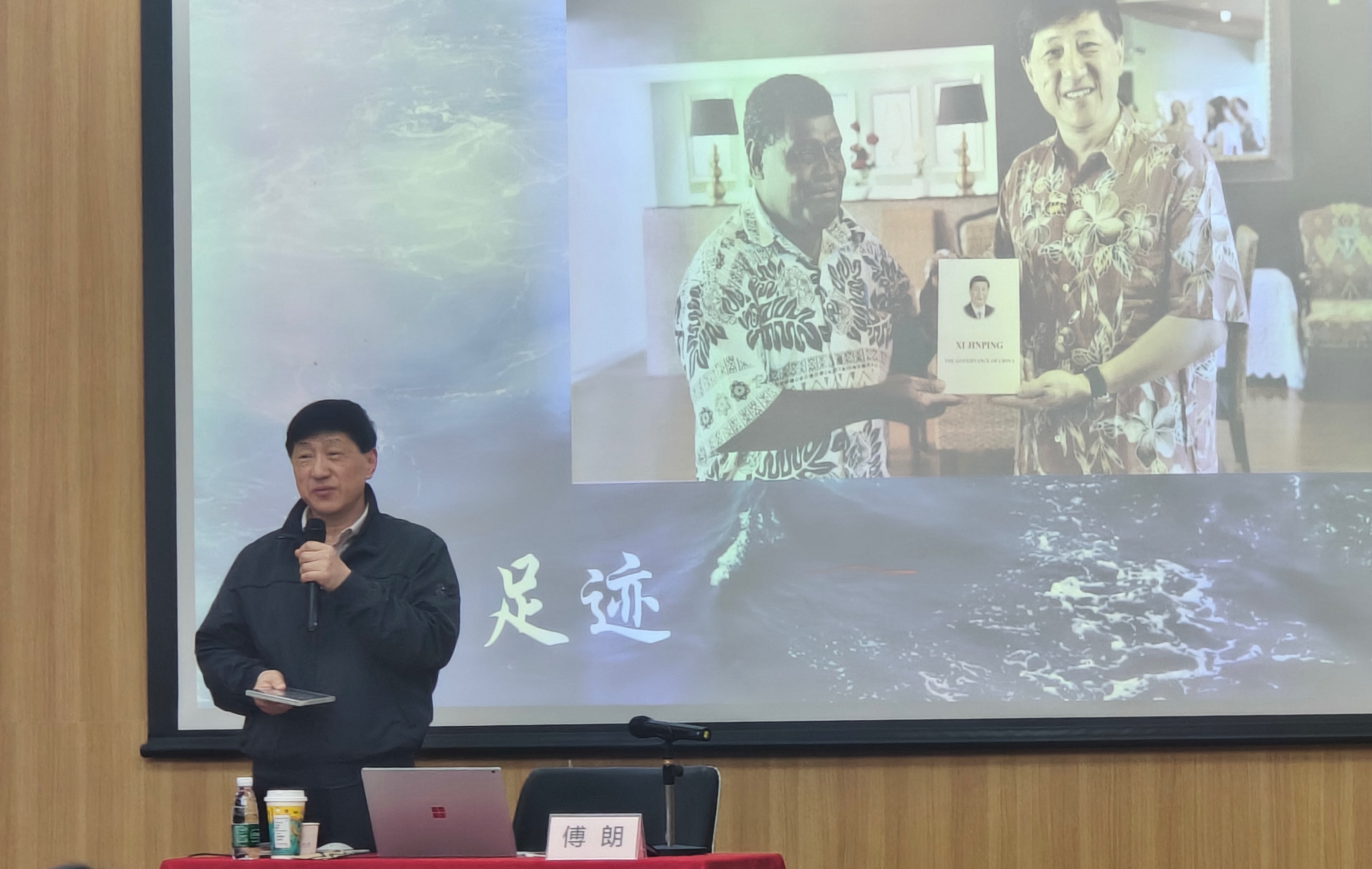 讲座中,傅朗带着对外事活动的热忱,回忆着在五大洲发生的外交趣事轶闻。30多年来,他的足迹遍及五大洲的一百四十多个国家,在200张照片的背后,是一个又一个精彩的外交往事。讲座不仅展现了五大洲的地域风貌与风土人情,更突出了傅朗及其团队卓越的外交能力与开阔的国际视野。讲座的最后,傅朗强调友谊、合作、发展的重要性,提出“世界要和平,周边要和睦”的美好愿景。
