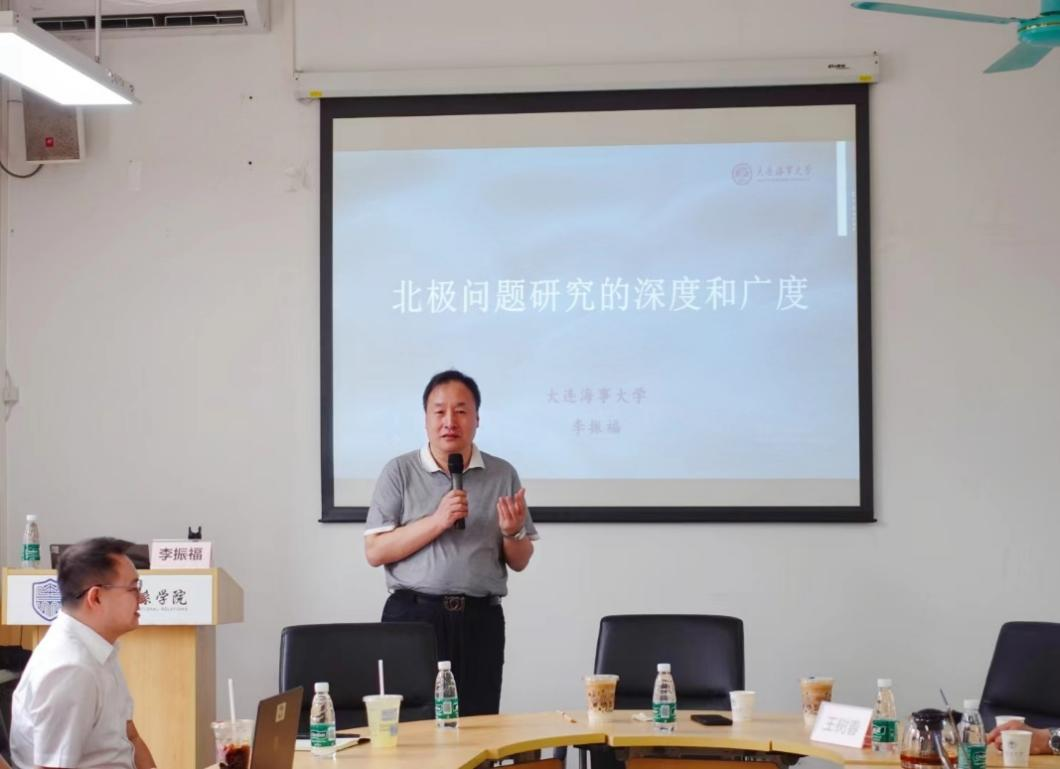 本网讯 4月12日下午,由国关学院和区域国别研究院联合主办的国关学术沙龙第25期在大学城校区教学楼D402会议室举行。本次讲座以“北极问题研究的深度和广度”为题,由大连海事大学交通运输工程学院教授、大连大学极地海事研究中心主任、博士生导师李振福主讲,国际关系学院教授王树春主持。