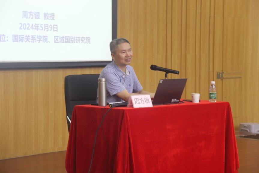 本网讯 5月9日下午,国际关系学院、区域国别研究院举办的国关大讲堂第50讲在大学城校区国际组织实验室举行。广东国际战略研究院副院长、太平洋岛国战略研究中心主任周方银教授就“日韩历史和解为何如此困难“作专题讲座。讲座由国际关系学院“云山青年学者”叶晓迪主持,青年教师李畅、王看等到场参加。活动吸引了近百名校内学生参与。