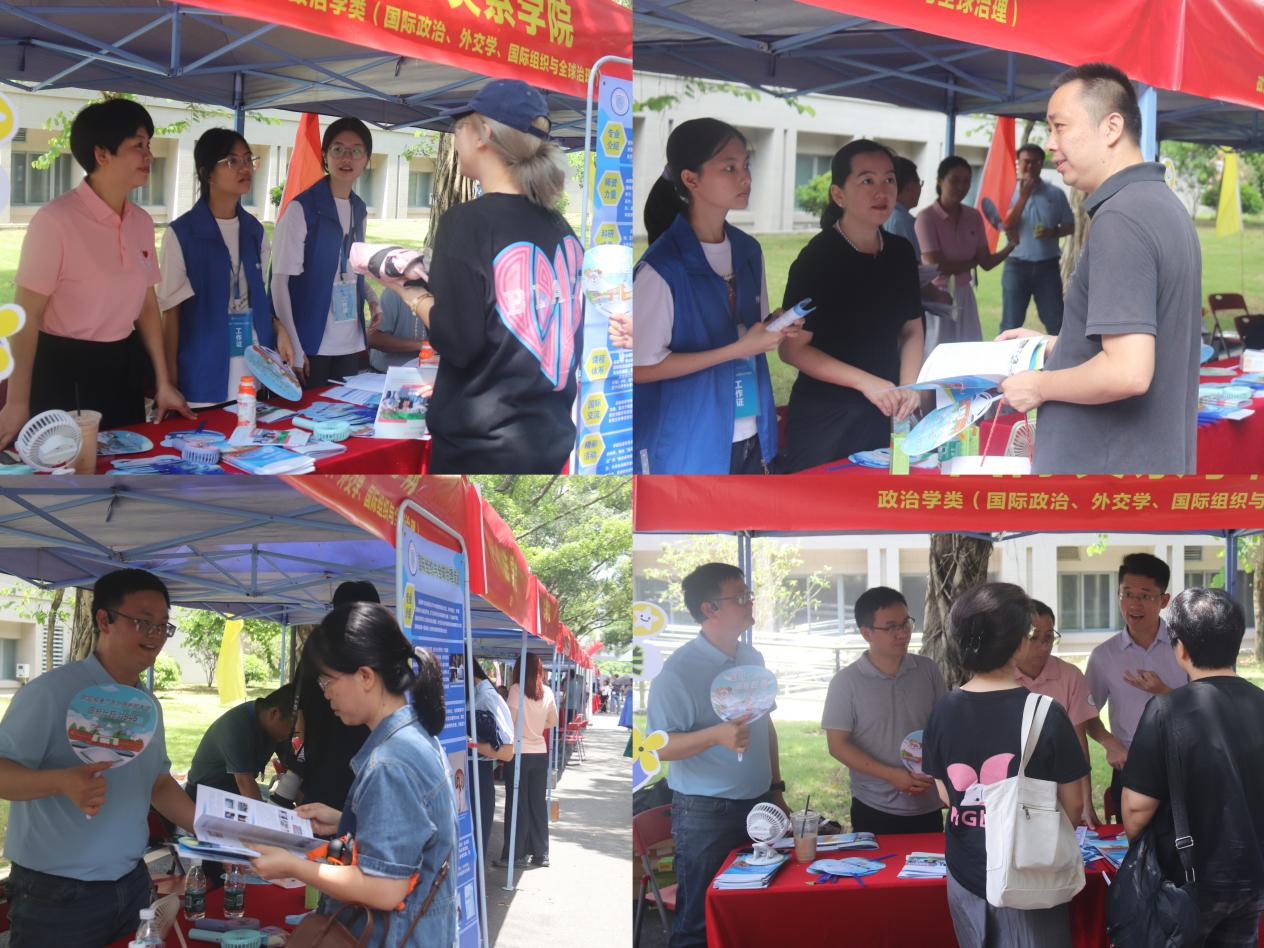 本网讯  6月26日上午,我校2024年“校园开放日”活动在白云山校区举行。我院党委书记袁薇佳院长唐小松副院长王志雄、吴艳党委副书记陈健外交学系主任周龙教师代表王石山、王看谭珺如、邢雨菲和学生志愿者等参与活动,现场接受咨询。
