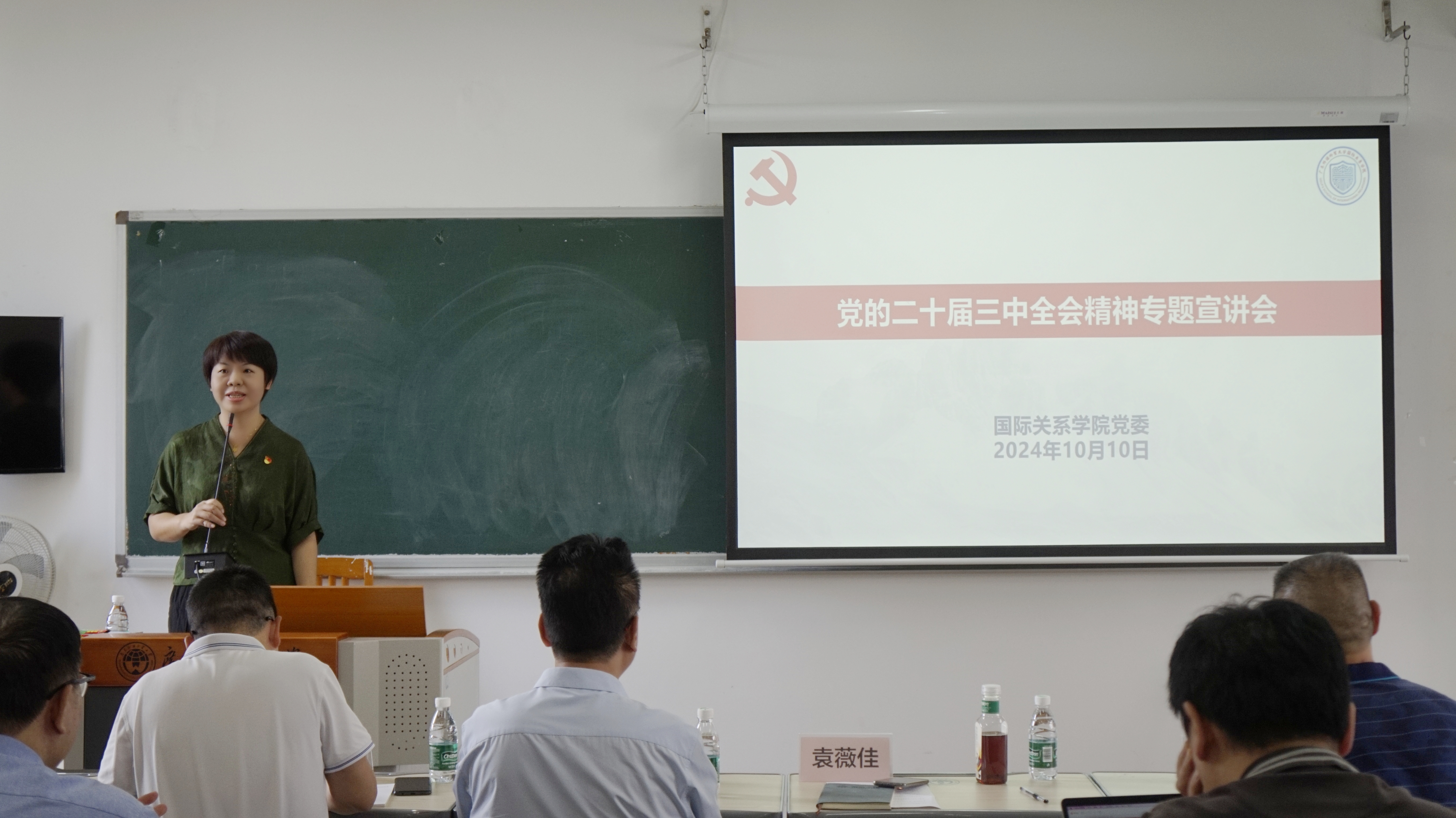 本网讯 为扩大党的二十届三中全会精神学习覆盖面,增强学习实效性,10月10日,国关学院党委在大学城校区教学楼D409举办党的二十届三中全会精神专题宣讲会,邀请我校党的二十届三中全会精神校级宣讲团成员、学校教学督导、马克思主义学院副教授郑亚伟担任主讲嘉宾,对党的二十届三中全会精神作深入解读。国关学院和区域国别研究院全体师生党员参加学习,党委书记袁薇佳主持会议。