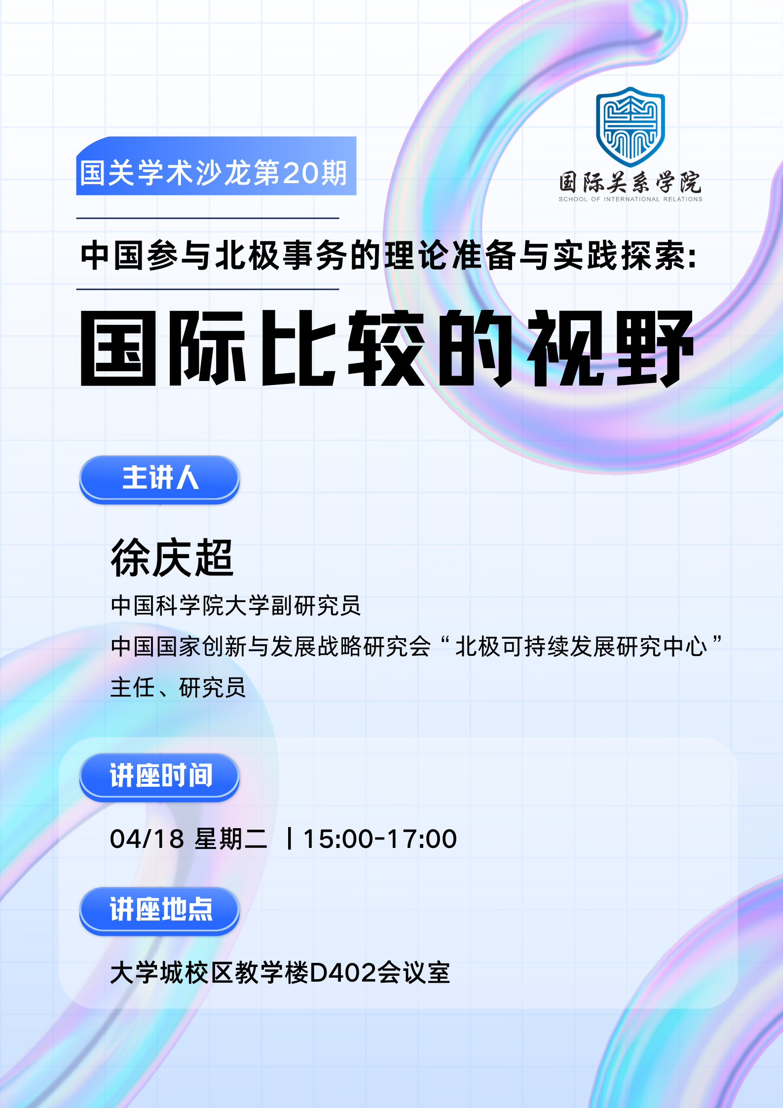 徐庆超,法学博士,中国科学院大学助理研究员,中国科学院国家创新与发展战略研究会研究员暨“北极可持续发展研究中心”(创始)主任,分别自2016年和2017年起,兼任“国际极地与海洋门户”研究员、“察哈尔学会”研究员。截至目前,已出版专著1部、发表中英文论文20余篇,承担包括国家社科基金项目在内的研究课题7项。最近五年主要从事北极研究,2021年11月将出版北极相关主题的专著1部。曾在上海社会科学院中国学研究所任职(2013-2015年),在北京大学国际关系学院做博士后研究(2015-2017年),以及在美国塔夫茨大学弗莱彻法律与外交学院做访问学者(2018-2019年)。