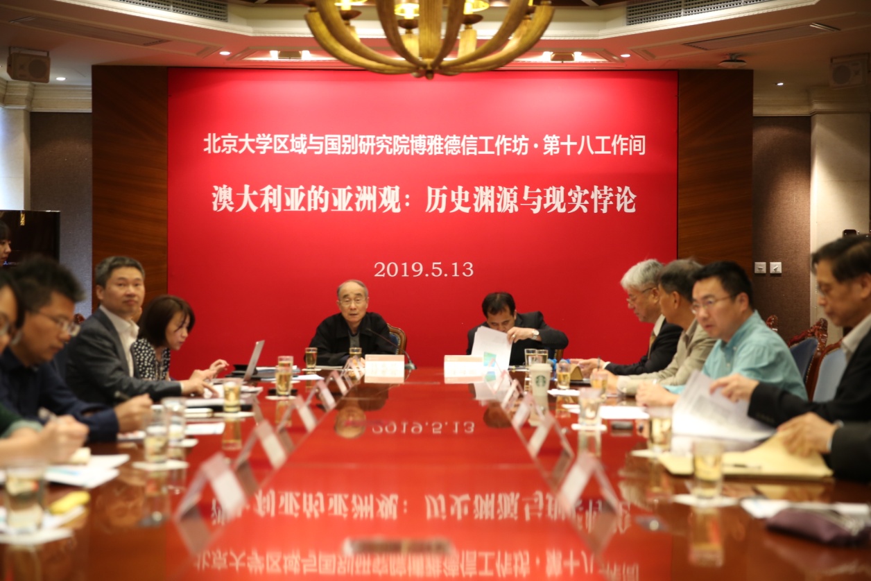 2019年5月13日,北京大学区域与国别研究院博雅工作坊第十八工作间在北京大学英杰交流中心举行。此次研讨会的主题为“澳大利亚的亚洲观:历史渊源与现实悖论”,来自北京大学、浙江大学、华东师范大学、北京外国语大学、广东外语外贸大学、江苏师范大学、中国社会科学院、中国现代国际关系研究院、中国国际问题研究院等高校与科研机构的10余名专家学者就与澳大利亚的亚洲观相关话题进行了深入探讨。
