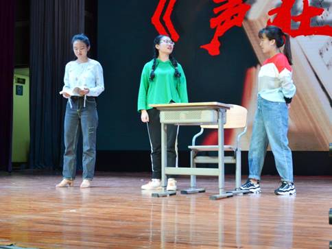 在等待比赛结果的中途,话剧队带来了一场笑中带泪的话剧演出——<<声外有声>>,主要讲述的正是一个女孩尽管唱歌唱得不好,但是仍然热爱音乐并且一路坚持的故事,话剧结尾演员站在舞台中央所说出的那句“灯光终会熄灭,但追求梦想的脚步不会停歇”不仅仅揭示了这个故事的意义,更触动了在场每一位观众的心弦。