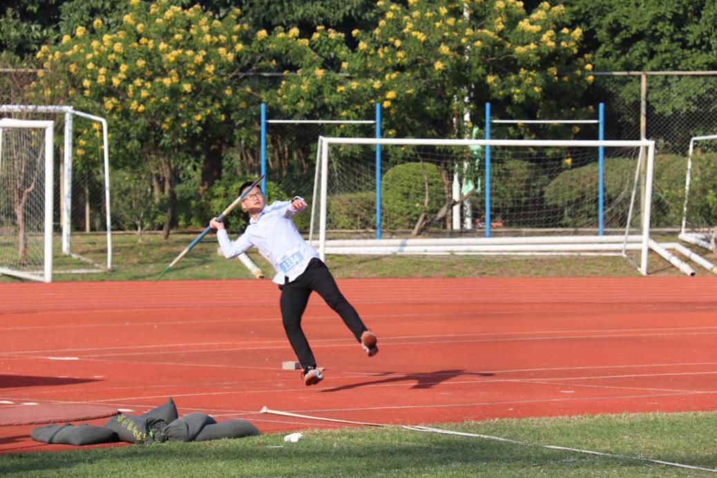 天空澄碧,男子标枪项目在绿茵场上悄然拉开帷幕。我院钟祥林同学以标枪为笔,将晴空作纸,划出一道道优美的弧线。汗水见证他的不懈努力,而钟同学勇于挑战自我的精神亦值得敬佩。