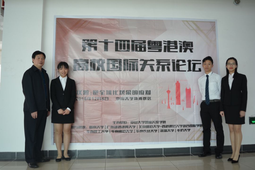 2018年12月8日,第十四届粤港澳高校国际关系论坛在中山大学珠海校区顺利举行。本次论坛的主议题为“逆全球化现象的应对”,并邀请了包括广东外语外贸大学、中山大学、暨南大学等粤港澳地区多所知名高校的优秀学子同台竞技。