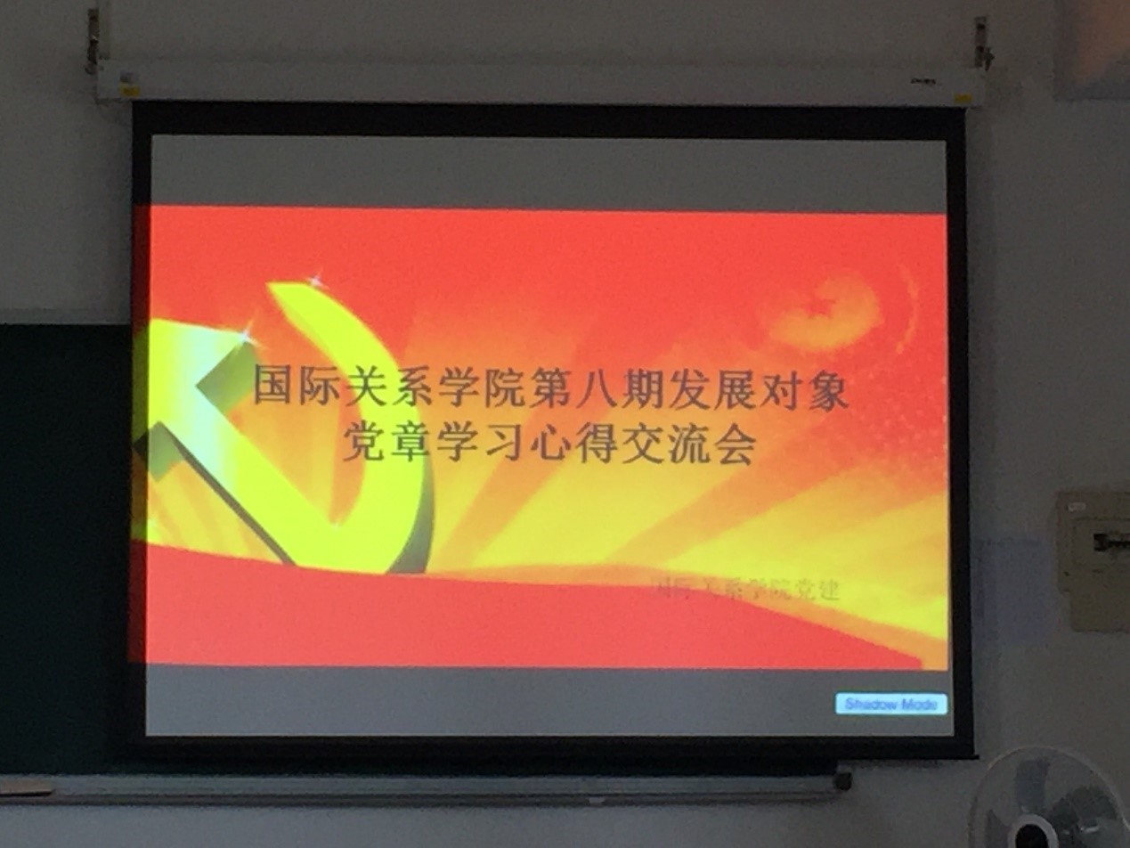 425日下午两点,国际关系学院的13名发展对象在教室里举行了《大国形象很有样》、《五四运动 神州觉醒》的视频学习和党章学习讨论会。