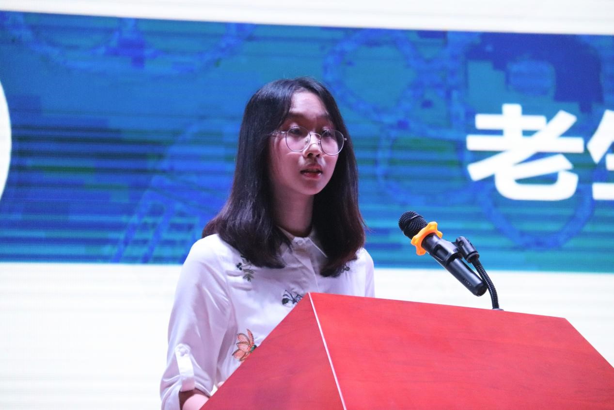 院学生会主席孙莹代表老生进行发言,结合自身经历,从学习及生活两个角度分享了经验。