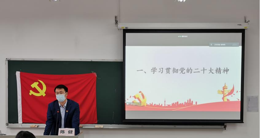 11月24日,学院党委副书记陈健深入本科学生党支部开展宣讲,组织员王莹老师,支部党员、发展对象等64人参加本次学习。陈健结合近期广州疫情防控的局势,强调要将党的二十大精神学习成果转化为推进疫情防控工作的强大动力,用实际行动履行党员的职责使命,扎实筑牢防疫堡垒。