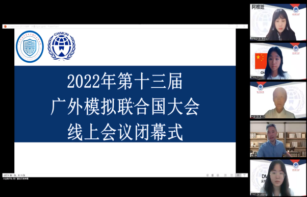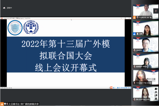 本网讯 2022年7月30至31日,由广东外语外贸大学国际关系学院主办、广东外语外贸大学模拟联合国协会承办的第十三届广东外语外贸大学模拟联合国大会在“云端”成功开展。